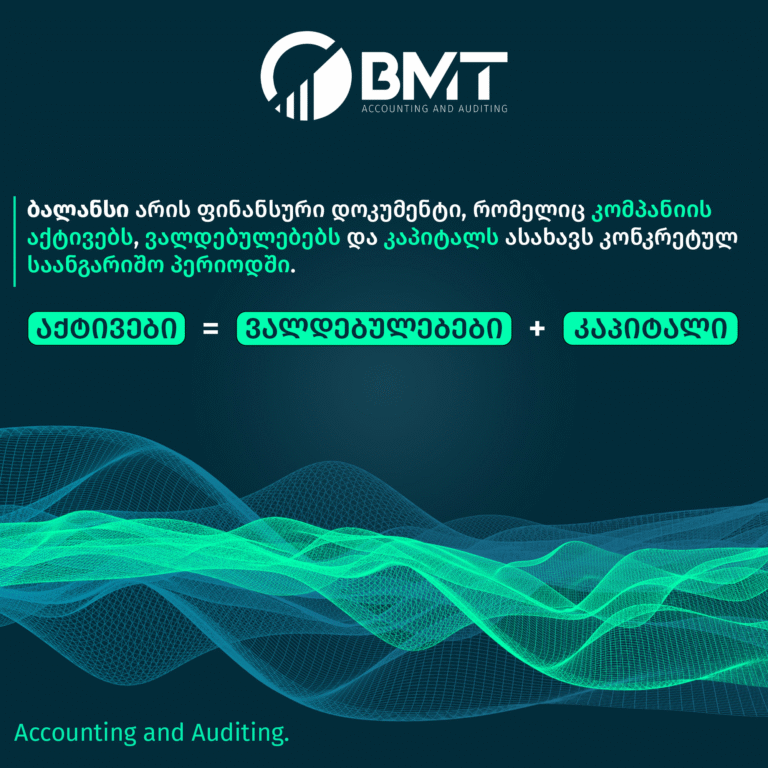 ბალანსი არის ფინანსური დოკუმენტი, რომელიც კომპანიის აქტივებს, ვალდებულებებს და კაპიტალს კონკრეტულ მომენტში ასახავს. მისი მთავარი პრინციპი ბალანსის ტოლობაა: აქტივები = ვალდებულებები + კაპიტალი ვისთვის არის ბალანსი მნიშვნელოვანი და როგორ გამოიყენება? მენეჯერებისთვის – კომპანიის ფინანსური მდგომარეობის ანალიზისა და განვითარების დაგეგმვისთვის. ინვესტორებისთვის – კომპანიის ღირებულებისა და მომგებიანობის შეფასებისთვის. ბანკებისა და კრედიტორებისთვის – კომპანიის გადახდისუნარიანობის შესამოწმებლად. საგადასახადო ორგანოებისთვის …